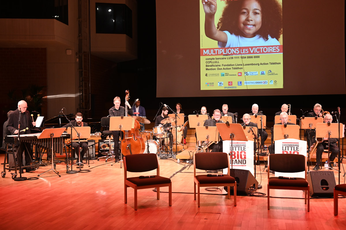 Le concert de lancement du Téléthon édition 2019 en date du 6 décembre 2019 était consacré à la musique des grands orchestres swing des années 40 et 50 avec un hommage à la musique de Glenn Miller, Michel Legrand et Leonard Bernstein. Le « Luxembourg Little Big Band » et ses solistes ont fait revivre le public les grands moments musicaux de cette époque avec une panoplie de chef d’œuvres de ce fabuleux répertoire pour big band.